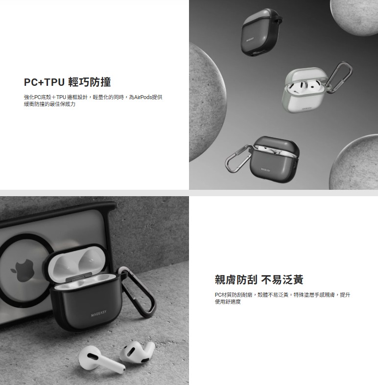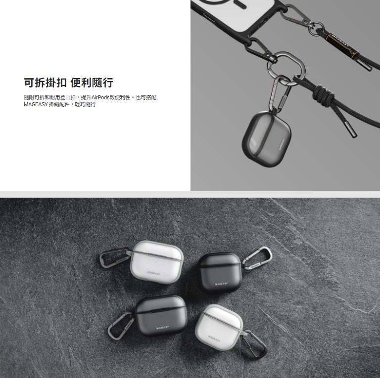 5. 隨附可拆卸耐用登山扣,提升AirPods殼便利性。也可搭配 MAGEASY 掛繩配件,輕巧隨行