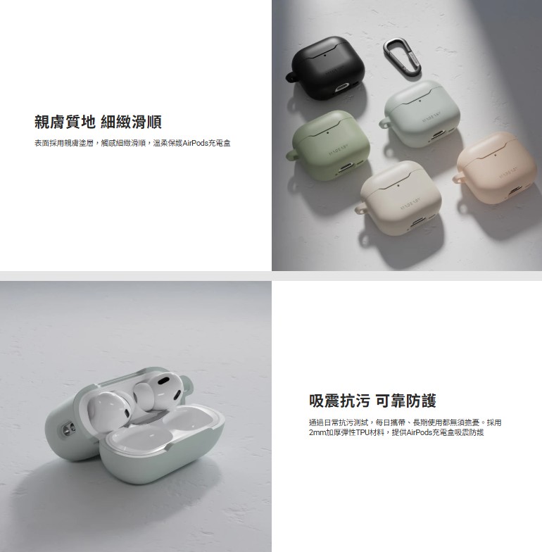 1.表面採用親膚塗層,觸感細緻滑順,溫柔保護AirPods充電盒