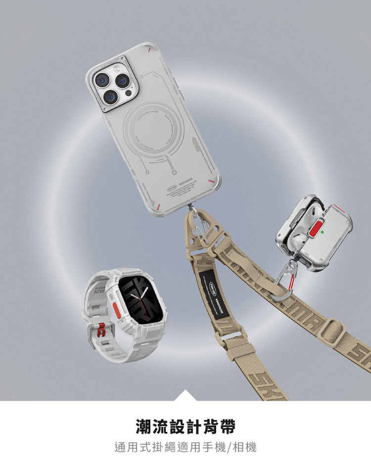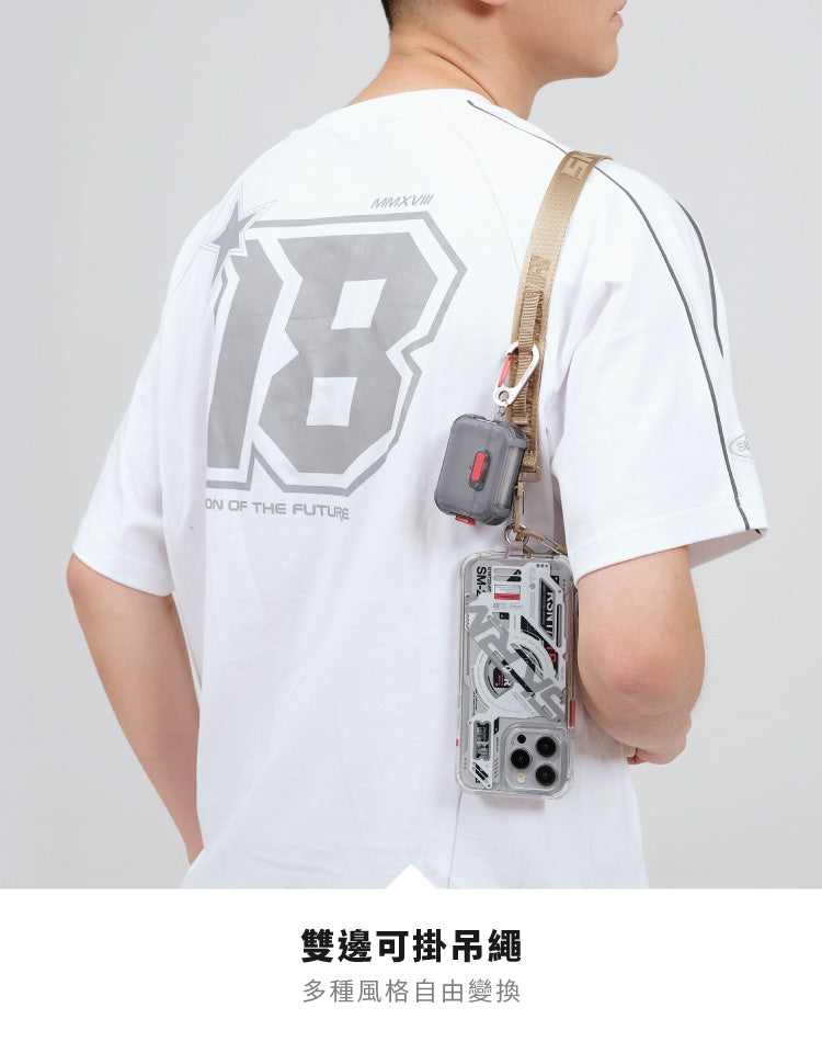 隨心所欲地掛上任何物品,讓生活更加便利與時尚!掛繩全面升級,進化掛鉤系統和寬肩帶,輕鬆攜帶手機或小包,環圈方便掛上 AirPods、鑰匙或其他小物件。