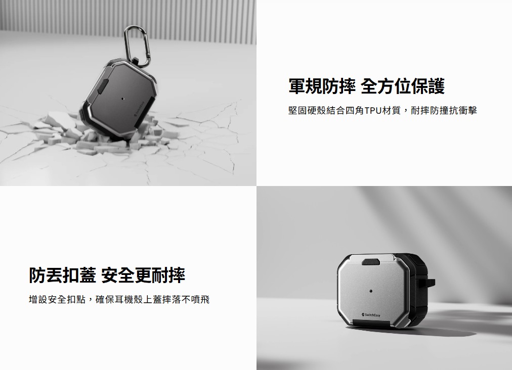 Defender+軍規耐衝擊支架耳機保護外殼為耳機提供絕對的防護!超越軍規等級耐摔,以四角TPU材質有效吸收傳導。